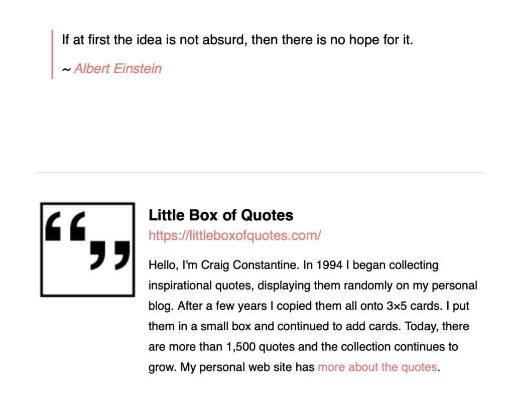 …and 30 years later, I now get a little email from my past self every day. No noise. Just a quote. https://littleboxofquotes.com/